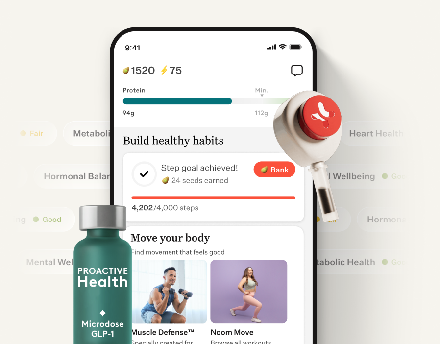 Noom’s Proactive Health Microdose GLP-1Rx Program simplifies tracking, combining at-home biomarker testing with habit tracking and low-dose GLP-1 support, if appropriate. It’s designed to help you stay informed and proactive about your health in a way that fits into everyday life. Get started now.