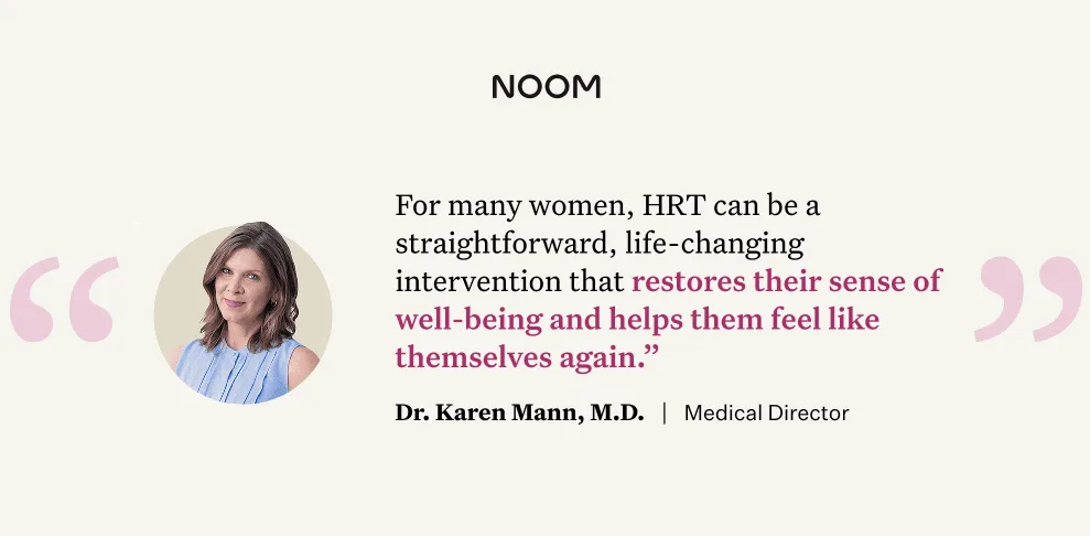 Looking for a more holistic way to navigate menopause? Noom + HRTRx could be the perfect fit. We’ll connect you with a qualified clinician who can help you explore HRT options, including patches and creams, to support your well-being. And because we know this journey is about more than just hormones, you’ll also get the Noom app and our expert-backed lessons to help you achieve your goals and find support.